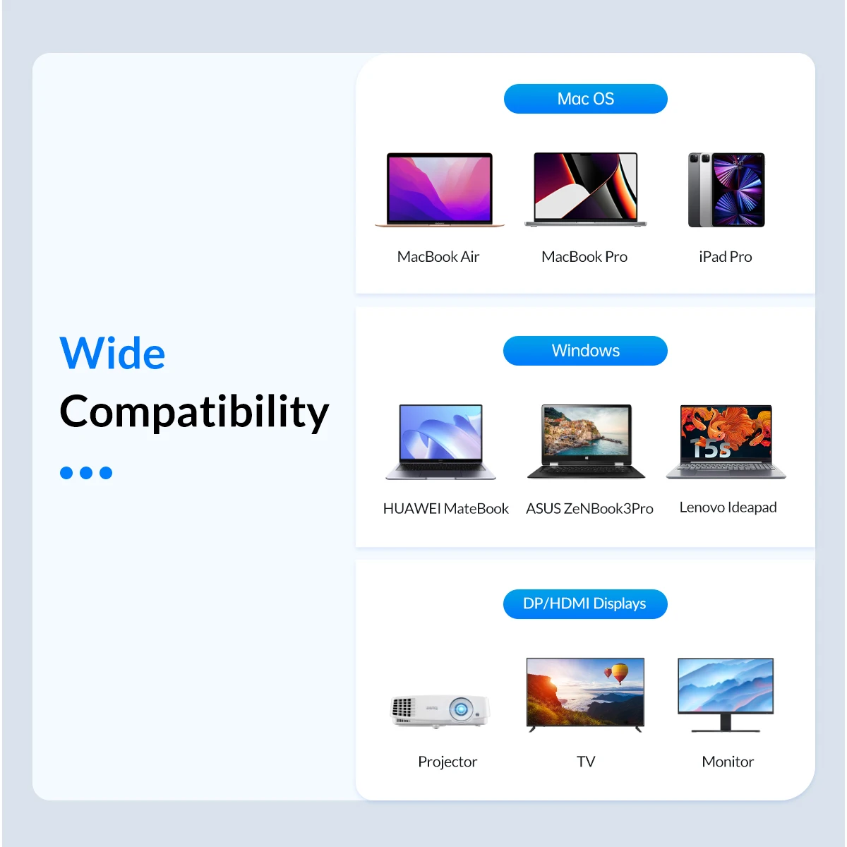Multi-Monitor Display: The HDMI-compatible and the DisplayPort both support a single-monitor display of up to 4K@60Hz. Connect to both simultaneously to enjoy crystal-clear streaming or mirroring across 2 displays at up to 2K@60Hz.