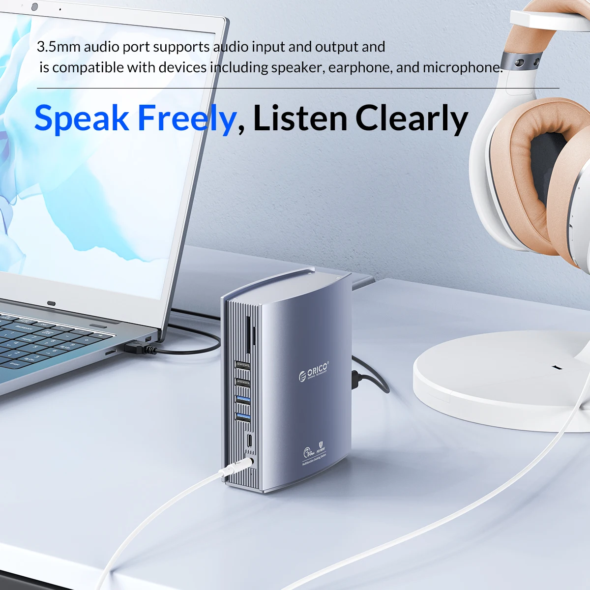 3.5mm audio port supports audio input and output and is compatible with devices including speaker, earphone, and microphone.