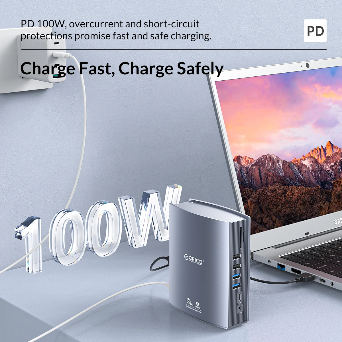 PD 100 W, over current and short-circuit protections promise fast and safe charging