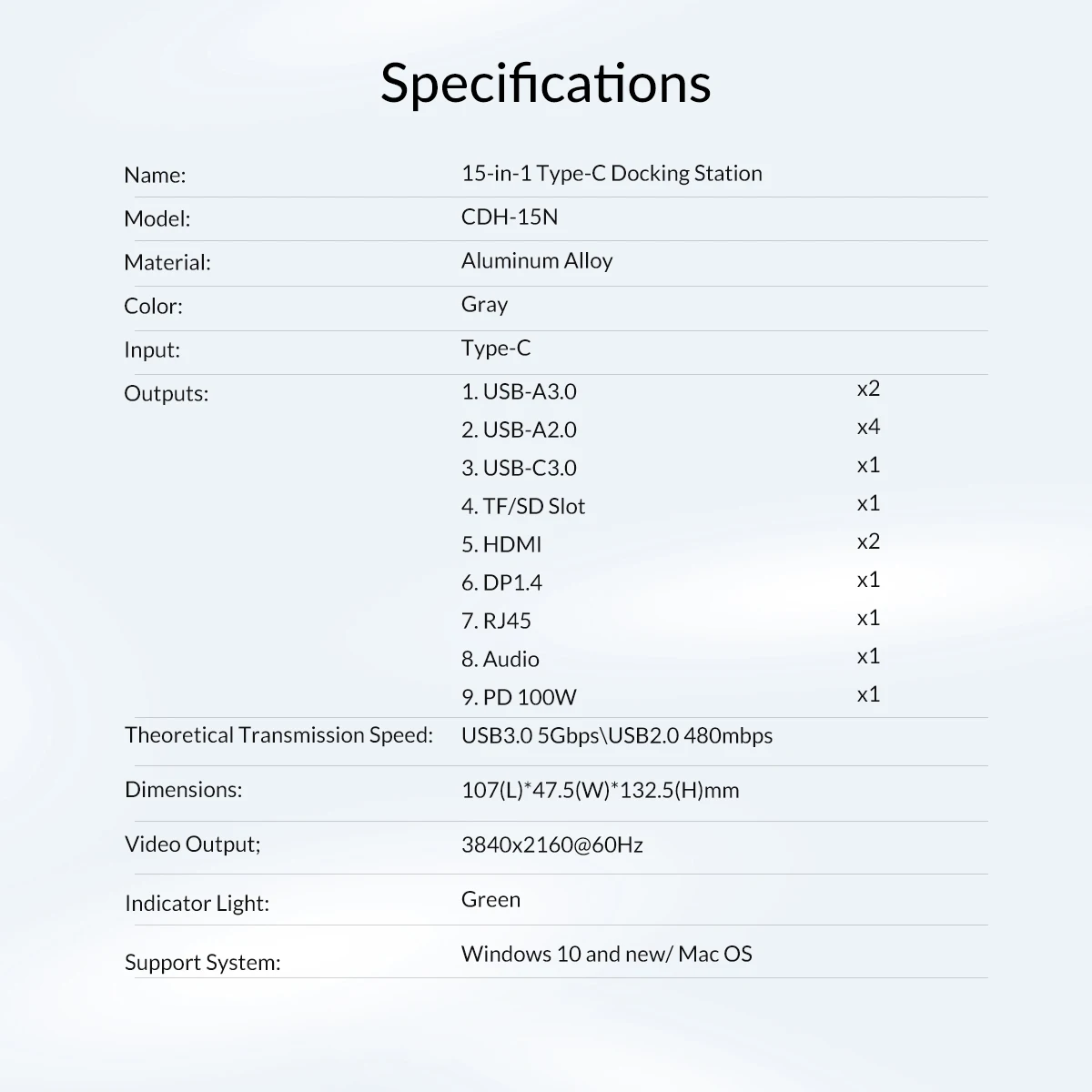 15-in-1 satisfies different professionals needs. (DP and HDMI-compatible 1 can not output simultaneously.)